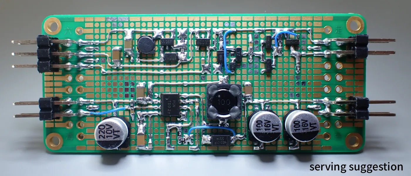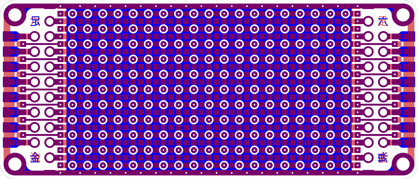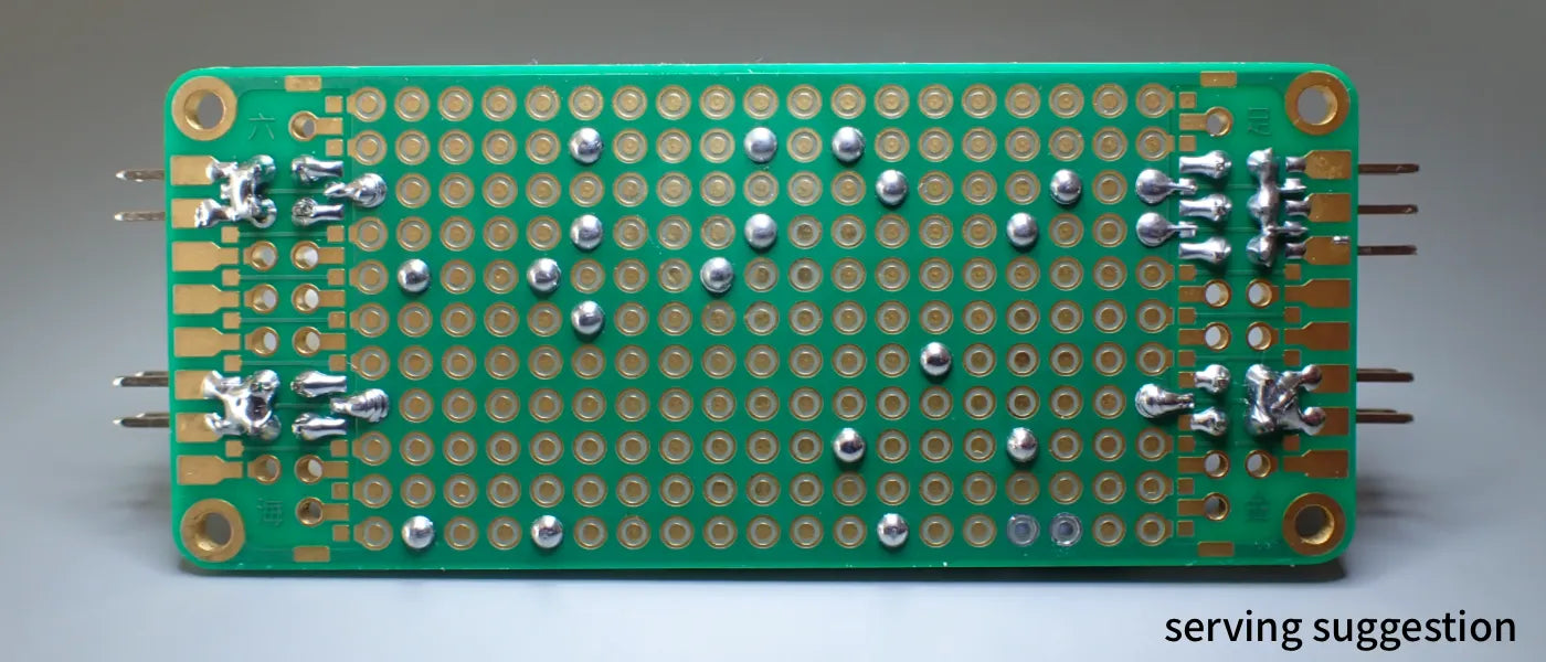 primal G (ground) boards have a checkered ground plane on the underside of the board. The round pads on the top side connect through the boards to the underside where they can be selectively attached to the ground plane with a small blob of solder. primal G boards are good for RF and other higher frequency circuits like buck/boost power converters running at a high switching rate.